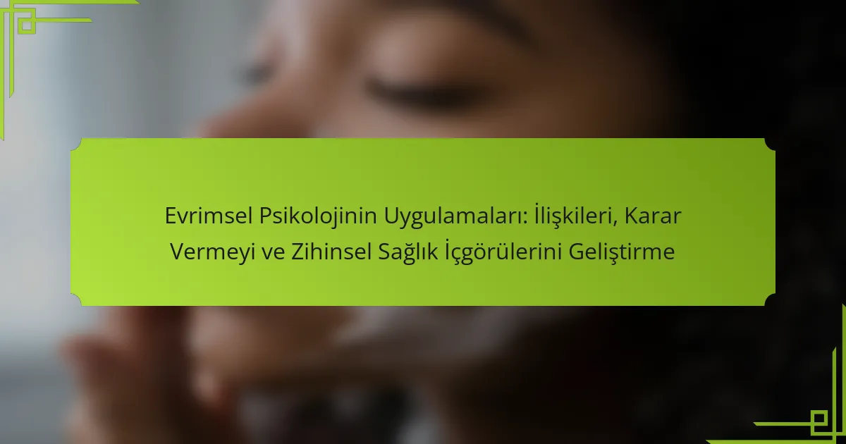 Evrimsel psikoloji, insan davranışları ve duygusal tepkiler hakkında içgörüler sağlayarak zihinsel sağlık uygulamalarını geliştirebilir. Psikolojik sorunların kökenlerini anlamalarına yardımcı olur ve daha etkili müdahalelere yol açar. Örneğin, kaygının evrimsel hayatta kalma mekanizmalarından kaynaklanabileceğini kabul etmek, terapistlerin başa çıkma stratejilerini uyarlamalarına olanak tanır. Ayrıca, ilişki dinamikleri üzerine evrimsel bakış açıları, terapileri bilgilendirerek daha sağlıklı etkileşimleri teşvik edebilir. Bu yaklaşım, biyolojik, psikolojik ve sosyal faktörleri entegre ederek zihinsel sağlığın bütünsel bir anlayışını teşvik eder.
