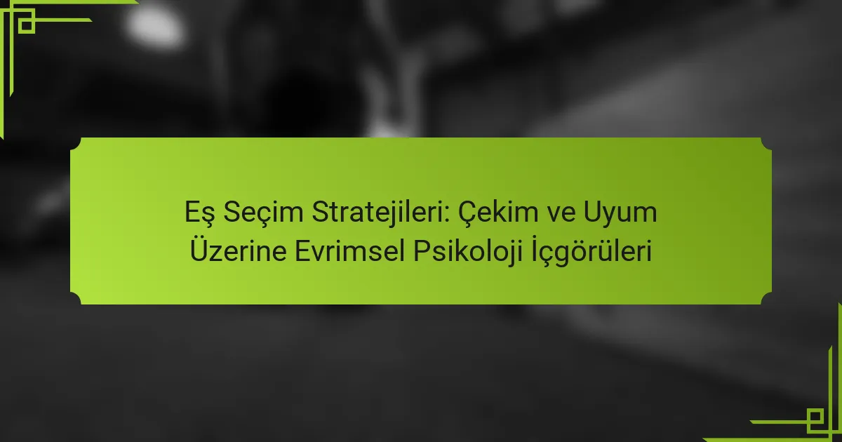 Eş seçim stratejilerini optimize etmek için, evrimsel psikolojiyi anlayarak çekimi ve uyumluluğu artırmaya odaklanın. Fiziksel sağlık ve sosyal statü gibi genetik uygunluğu gösteren özellikleri önceliklendirin. Ayrıca, uzun vadeli uyumluluğu teşvik eden paylaşılan değerler ve ilgi alanlarını dikkate alın. Duygusal zekayı vurgulayın; çünkü bu, ilişki tatmininde kritik bir rol oynar. Son olarak, sosyal ve çevresel faktörlerin eş tercihleri üzerindeki etkisini göz önünde bulundurun; çünkü bu faktörler seçimleri önemli ölçüde etkileyebilir.