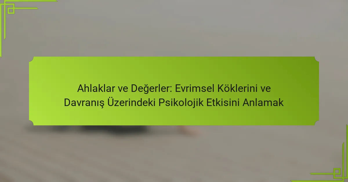 Ahlak ve değerler, sosyal işbirliği ve hayatta kalma ile kök salmış evrimsel kökenlere sahiptir. Erken insan toplulukları, grup bağlılığını artırmak ve özverili davranışları teşvik etmek için ahlaki çerçeveler geliştirmiştir; bu da güven ve işbirliğini artırmıştır. Bu sosyal bağlanma, hayatta kalma ve üreme başarısını artırmıştır. Psikolojik çalışmalar, bu ahlaki sistemlerin davranışı etkilediğini, bireysel karar verme ve topluluk dinamiklerini şekillendirdiğini göstermektedir. Bu kökenleri anlamak, bu yapıların insan psikolojisi ve sosyal etkileşimde ne kadar derinlemesine yerleştiğini ortaya koymaktadır.