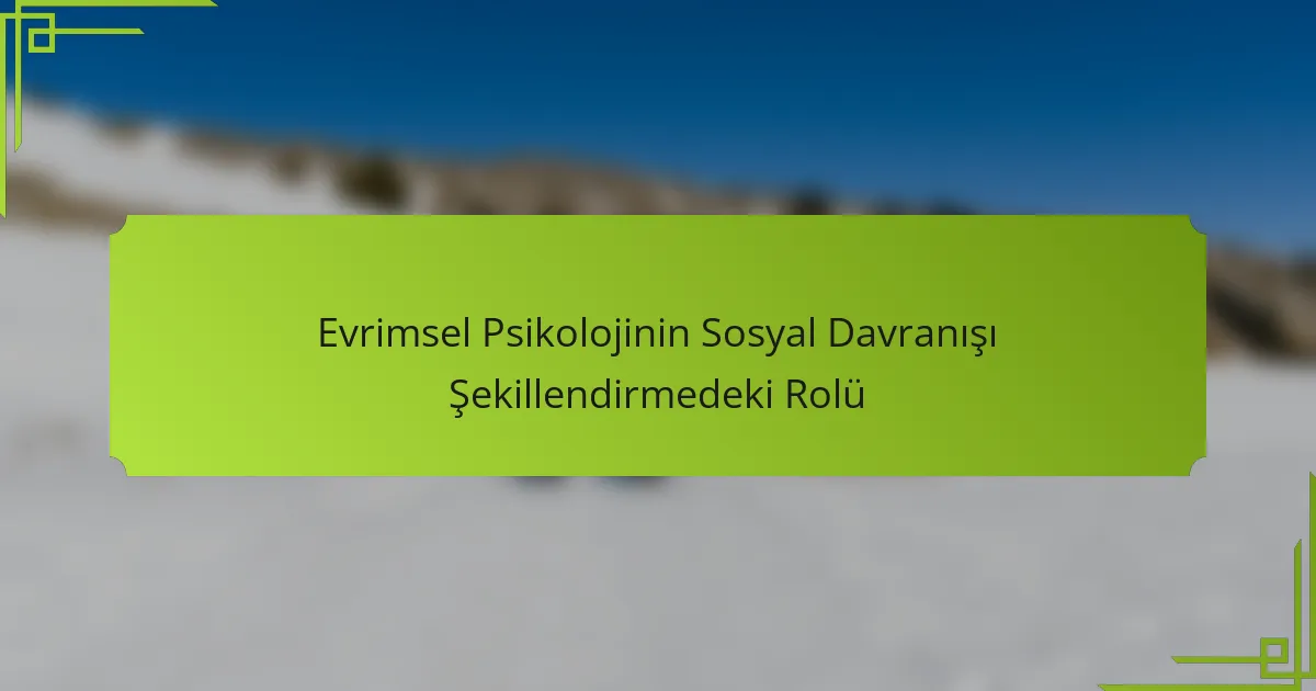 Evrimsel psikolojinin evrensel özellikleri, doğuştan gelen davranışlar, uyumlu özellikler ve doğal seçilimle şekillenen sosyal dinamikleri içerir. Bu özellikler, insan etkileşimlerini yönlendirir ve işbirliği, rekabet ve eş seçimini etkiler. Bu unsurları anlamak, evrimsel baskıların günümüz sosyal davranışlarını nasıl şekillendirdiğini ortaya koyar.